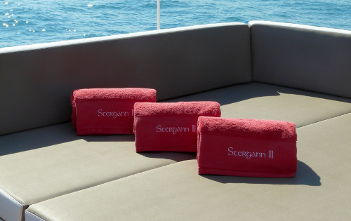 On either side, there is a sun pad and additional seating in the sunshine is placed farther aft. A large swim platform is placed at the centre of the stern, while stairs lead down each hull for easy access into the water.