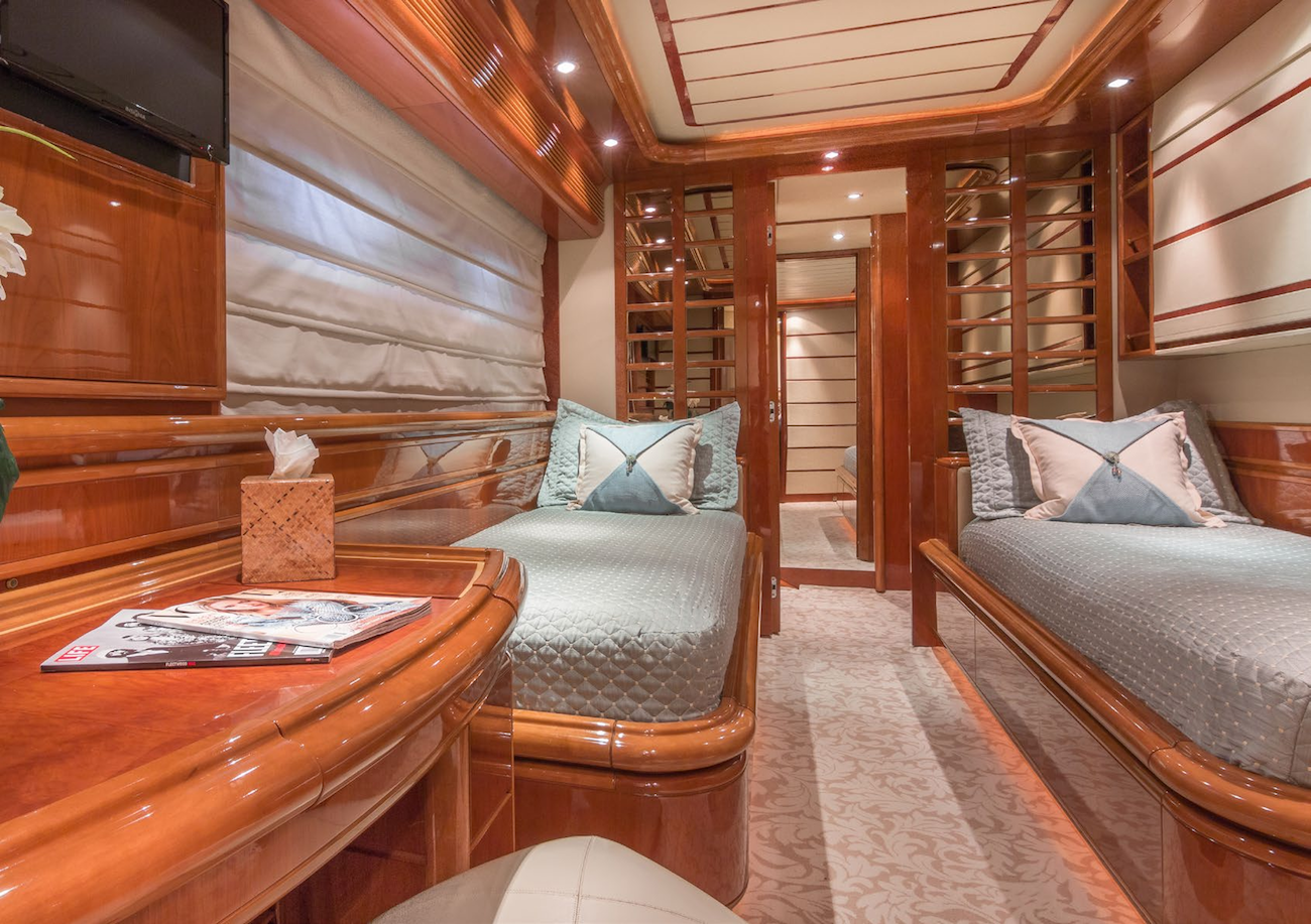 Below decks, 4 stylish guest cabins each have en-suite facilities.