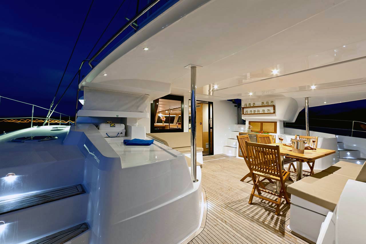 Some of her practices include; the use of biodegradable cleaning agents, encouraging Reefsafe products. Discreetly placed solar panels assist in boosting energy levels. A state of the art modern reverse osmosis filter system. Dinghy engine is low emission, etc.
