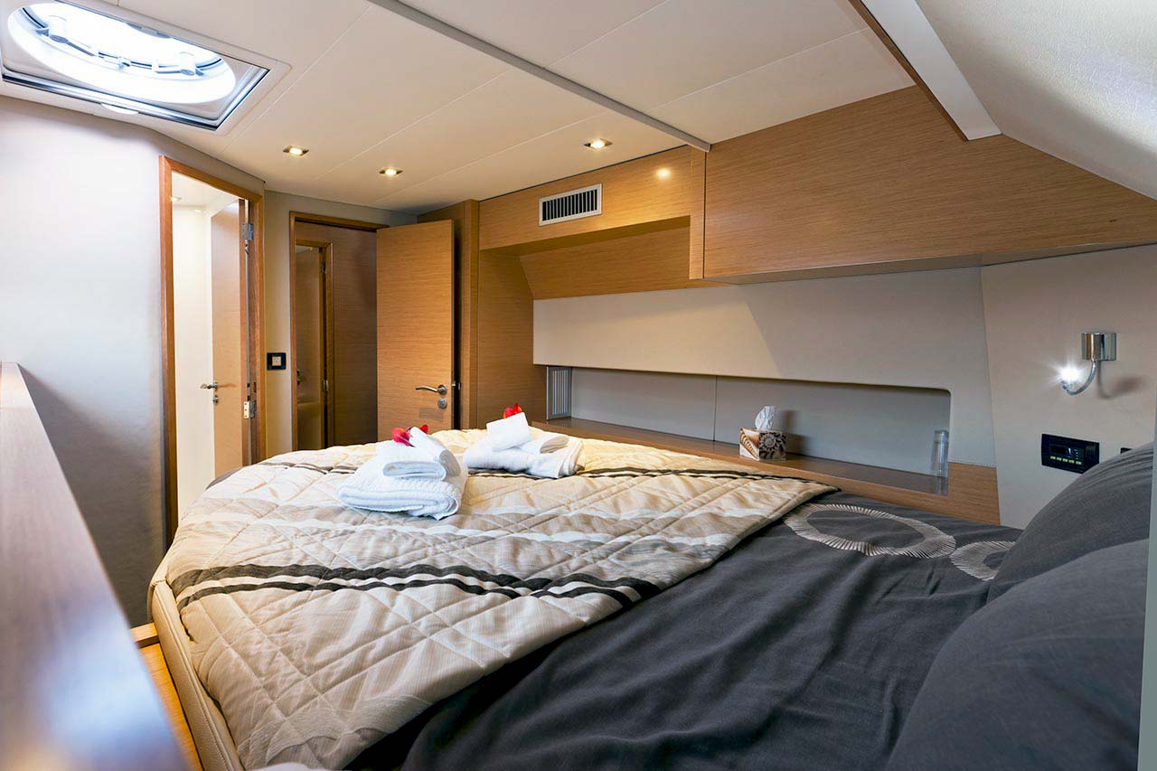 The cockpit below is wide open and very spacious, featuring a comfortable seating area, a dining table which seats 10 guests. It has a well stocked ‘wet’ bar also knows as ‘the Captains Corner’, from here you can enjoy a ...