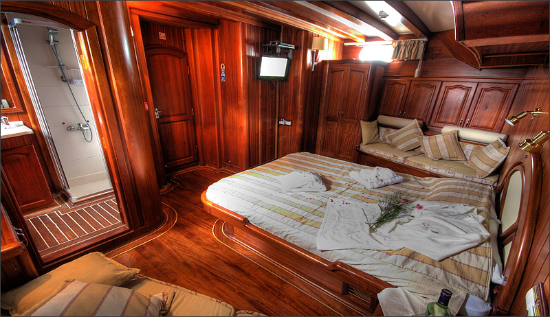 The interiors offer comfortable accommodation for 10 people in 4 double cabins and 1 twin cabin with air conditioning and WIFI available. The spacious deck offers shaded areas to enjoy lounging and dining, with plenty of sunbeds to soak up some sunshine or enjoy the view.