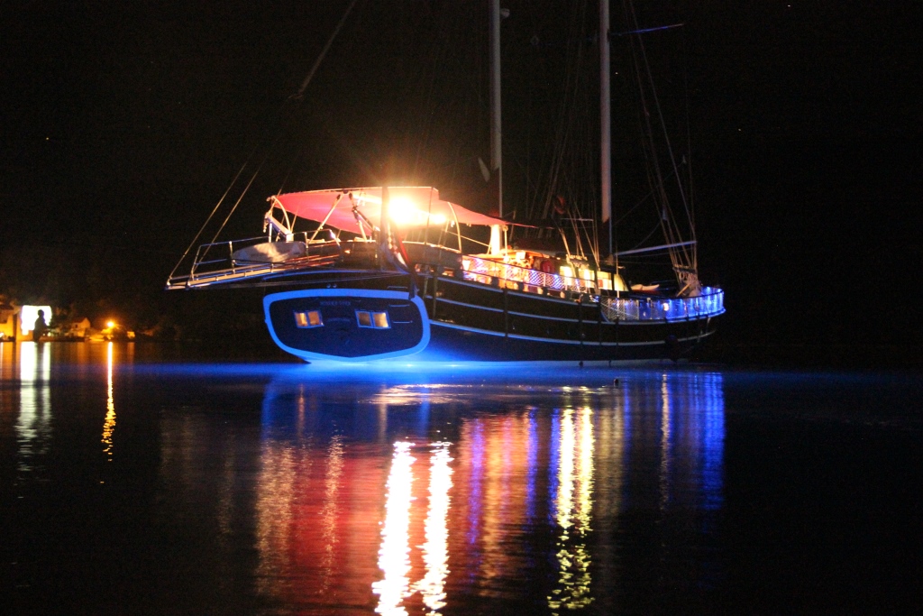 Windsurfing, 2 Seadoos or fishing to enjoy! Thanks to special deck and underwater lights, night times transform the yacht into a majestic, tranquil paradise to enjoy the outlook and surroundings of each anchorage during your Croatian charter yacht vacation.