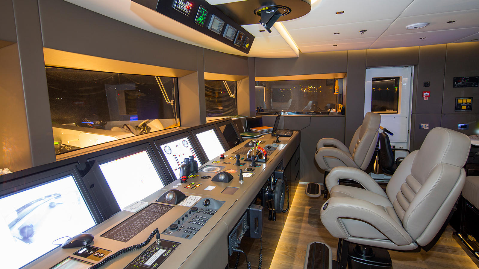 On the upper bridge deck aft has a generous seating area and coffee tables, perfect for an evening aperitif.