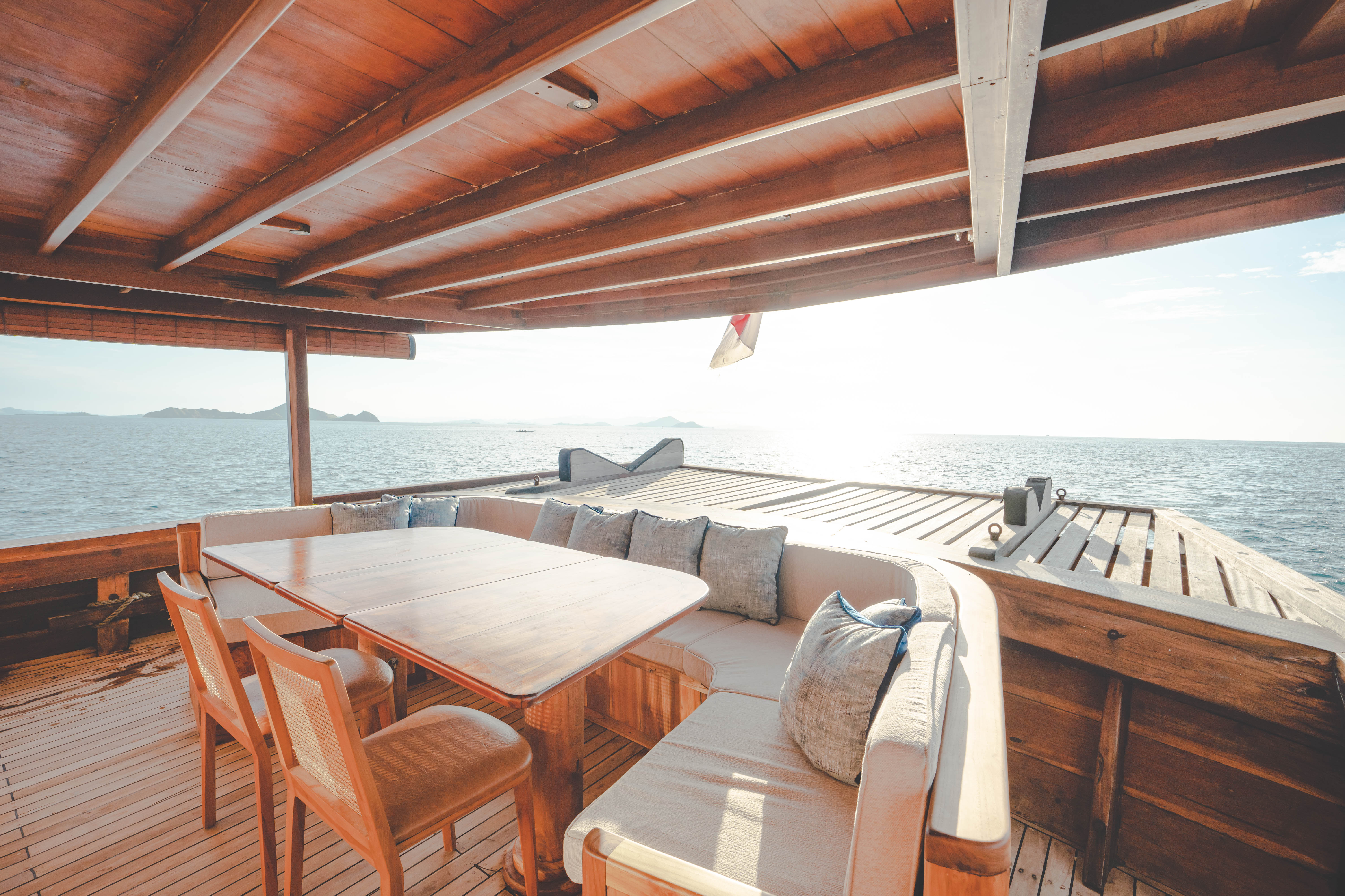A large dining area seats guests on the aft deck where they will be served a delicious selection of Asian fusion cuisine.