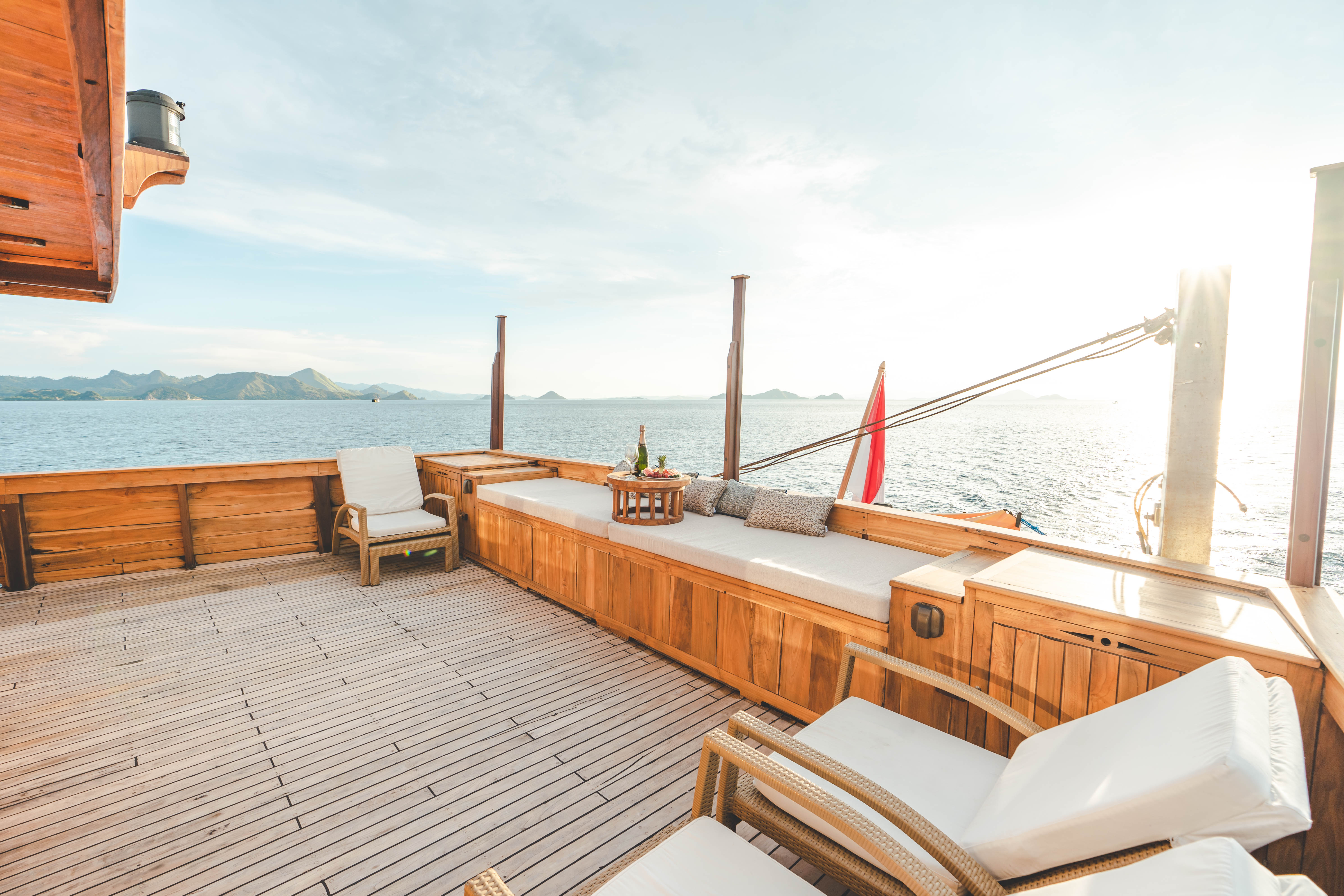 MISCHIEF features three spacious air-conditioned cabins, all uniquely positioned above deck, making the most of Indonesia’s spectacular landscapes. An additional twin cabin on the lower deck can be used to accommodate an additional 2 guests if necessary.