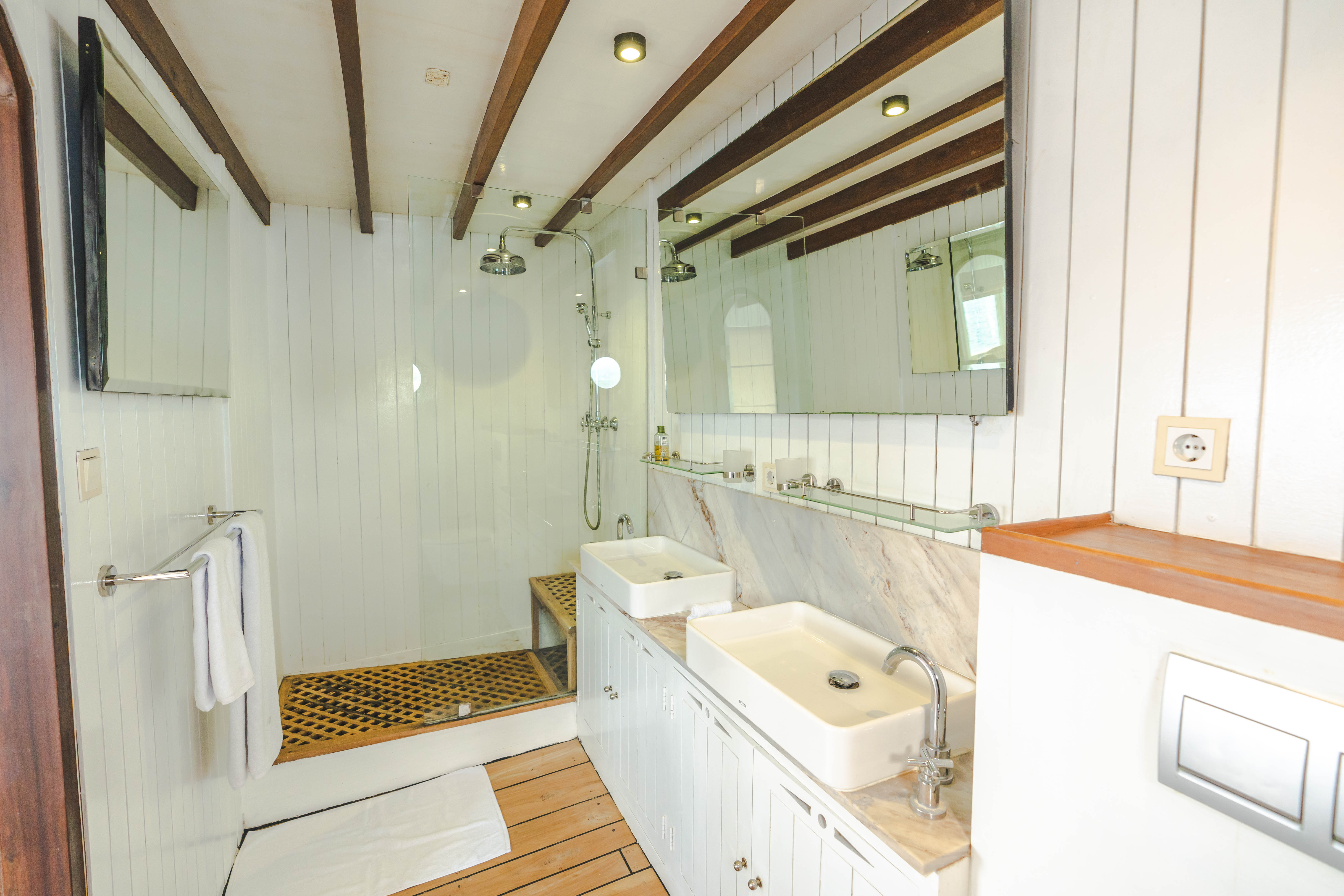 All cabins are light and airy and feature natural teak floors and a neutral colour palette plus a walk-in wardrobe and an ensuite bathroom with a power shower and his and hers vanities. Eco-flush toilets ensure the yacht remains ...