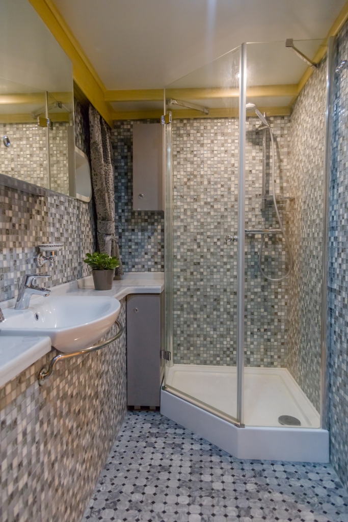 Forward guest cabin: twin single beds, walk-in wardrobe with both hanging and storage facilities, drawer/cupboard storage, refrigerator, 32″ HD LED TV, overhead and concealed 24v lighting with dimmer, bedside wall lights, ...