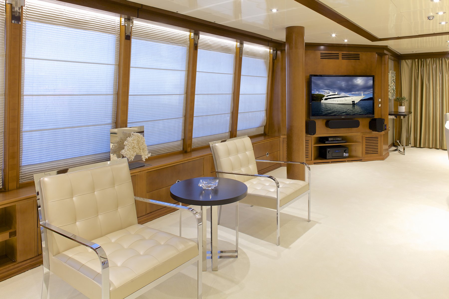 The amount of exterior living areas is remarkable. The top deck is the relaxation and recreation hub, as it hosts a massive Jacuzzi, sun pads, sun loungers and ample seating.