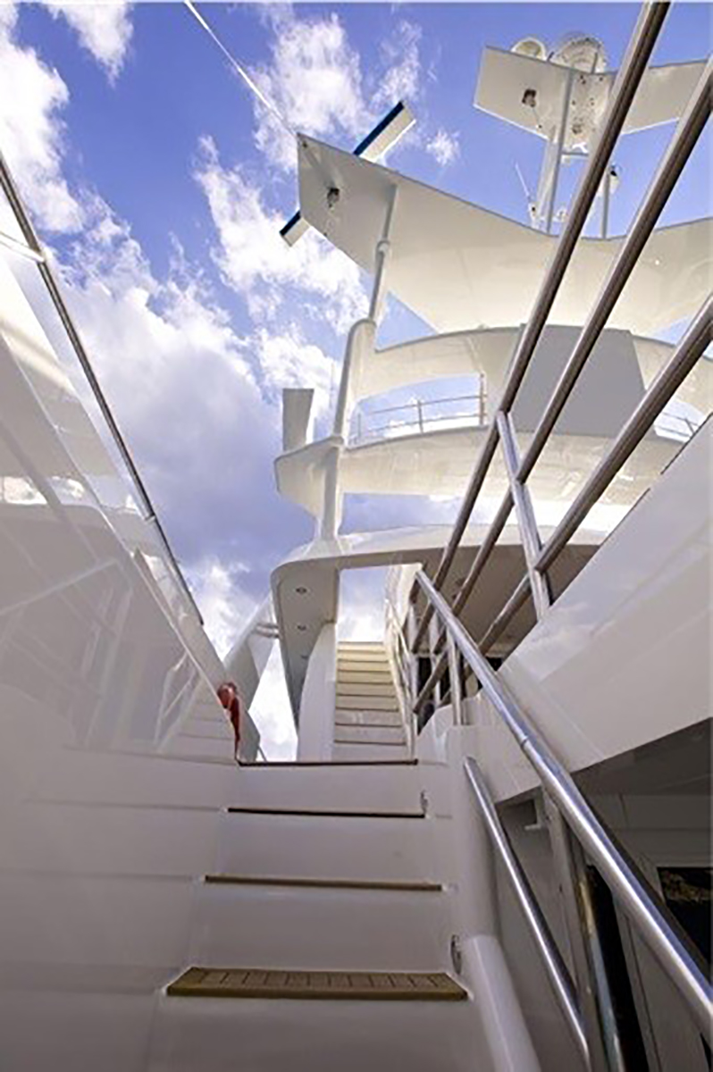 The amount of exterior living areas is remarkable. The top deck is the relaxation and recreation hub, as it hosts a massive Jacuzzi, sun pads, sun loungers and ample seating. There is another sunbathing area on the deck below.