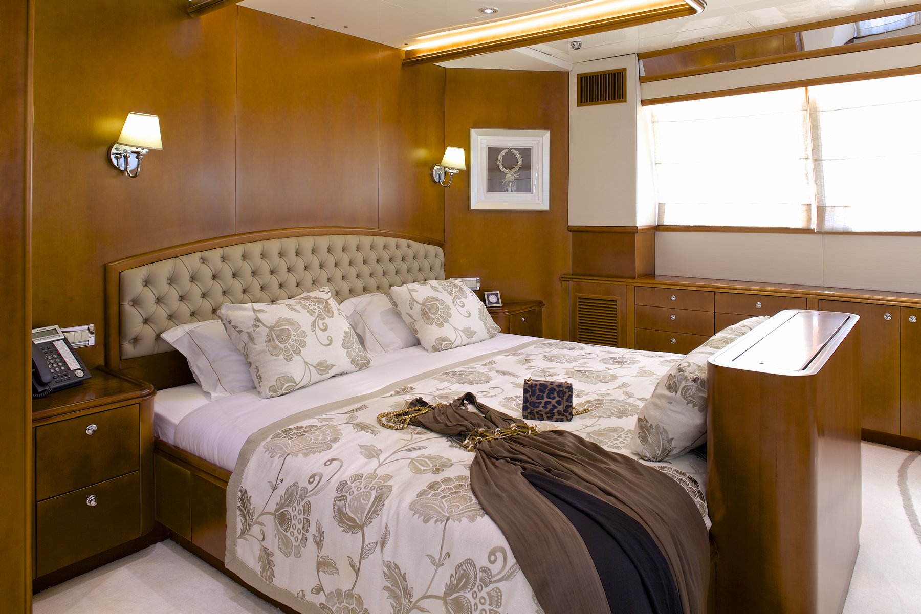 Spacious cabins of O'LEANNA can accommodate 12 guests in comfort. There are two master cabins: one on the upper deck and the other on the lower deck. There are also two double guest cabins and two twin cabins.