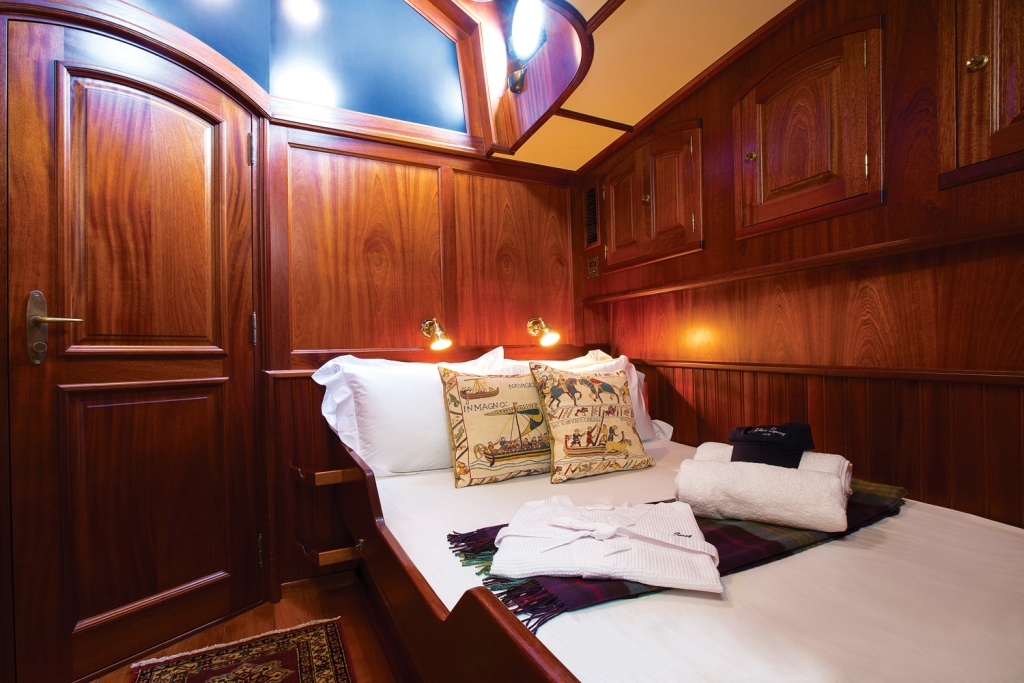 The yacht has auxiliary power provided by a Scania 316hp engine, she has cruising speeds of 10 knots and top speeds of 15 knots.