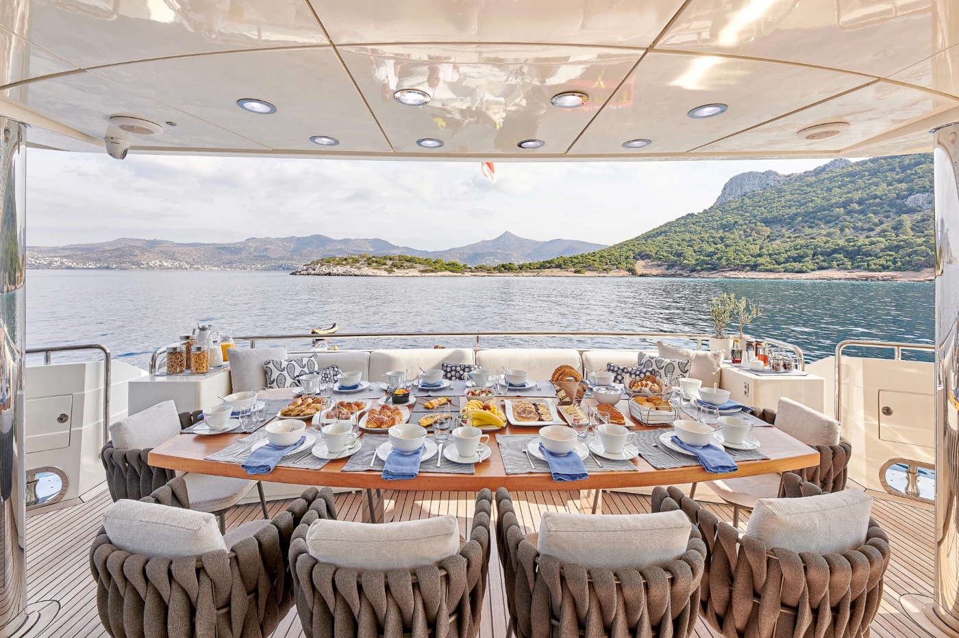 M/Y RINI’s sleek exterior style is the work of Carlo Galeazzi. The yachts interior décor by Cantieri Navali Rizzardi has an organic and timeless atmosphere of sophistication and refinement. She can accommodate up to 12 charter guests in 5 cabins.