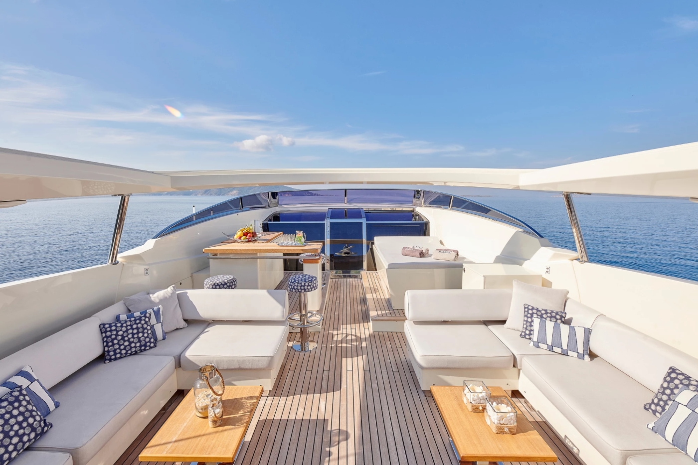 The yachts interior décor by Cantieri Navali Rizzardi has an organic and timeless atmosphere of sophistication and refinement. She can accommodate up to 12 charter guests in 5 cabins.
