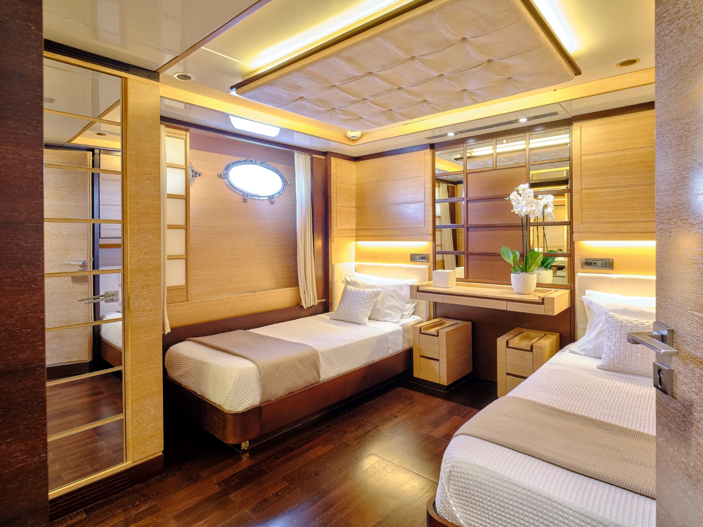 The yachts interior décor by Cantieri Navali Rizzardi has an organic and timeless atmosphere of sophistication and refinement. She can accommodate up to 12 charter guests in 5 cabins.