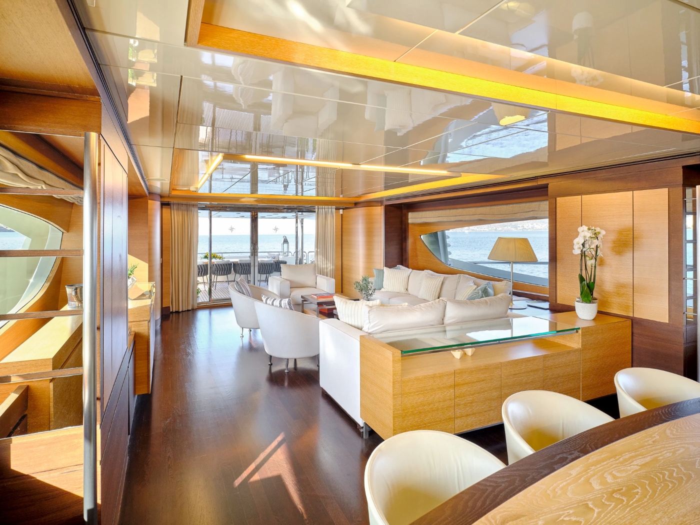 The yachts interior décor by Cantieri Navali Rizzardi has an organic and timeless atmosphere of sophistication and refinement. She can accommodate up to 12 charter guests in 5 cabins.