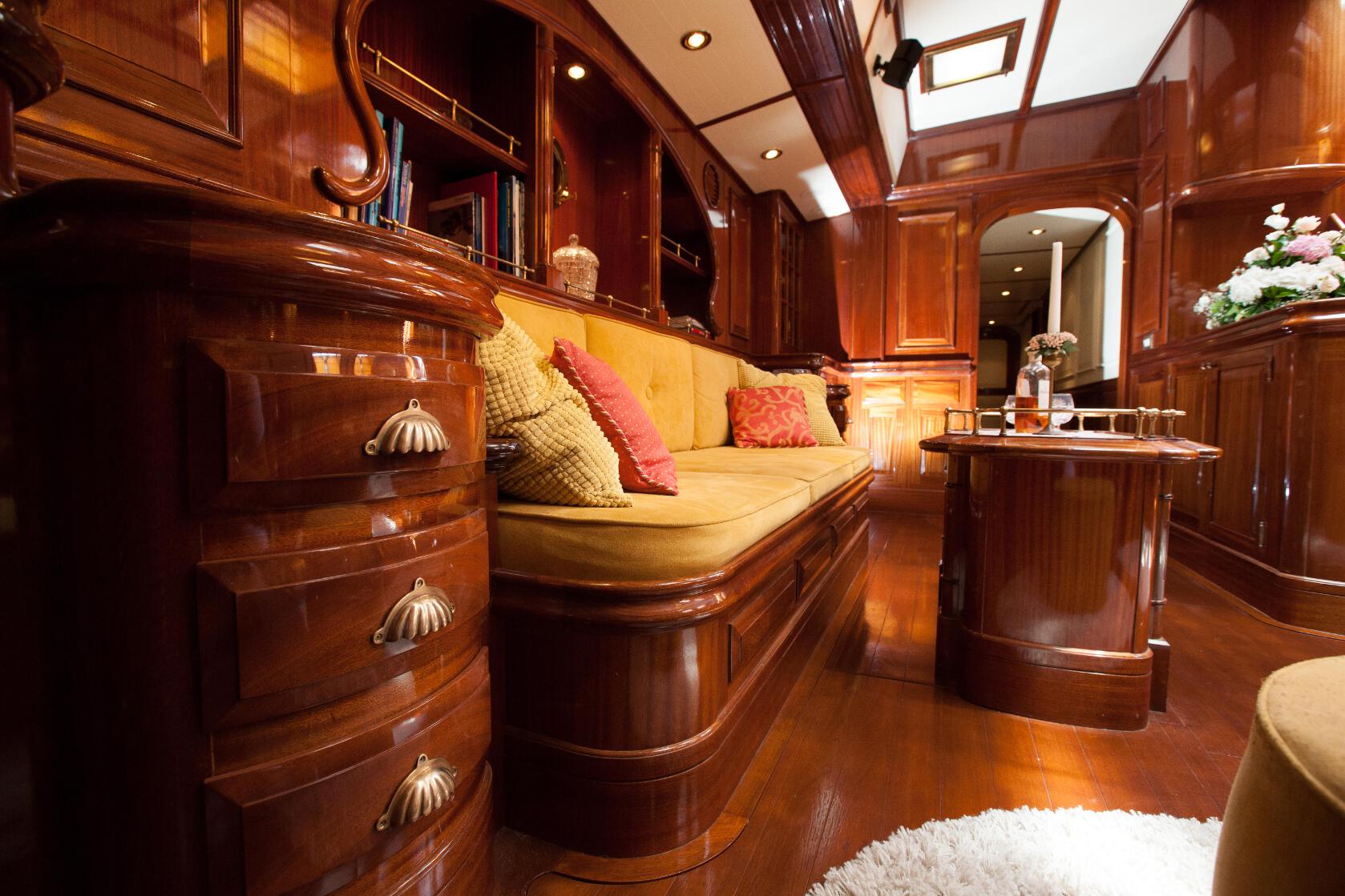 There is a master cabin, with ensuite bathroom, large storage spaces. The twin cabin has an ensuite bathroom and a large storage space. One single cabin is also with an ensuite and a storage space. Tenders & Toys
