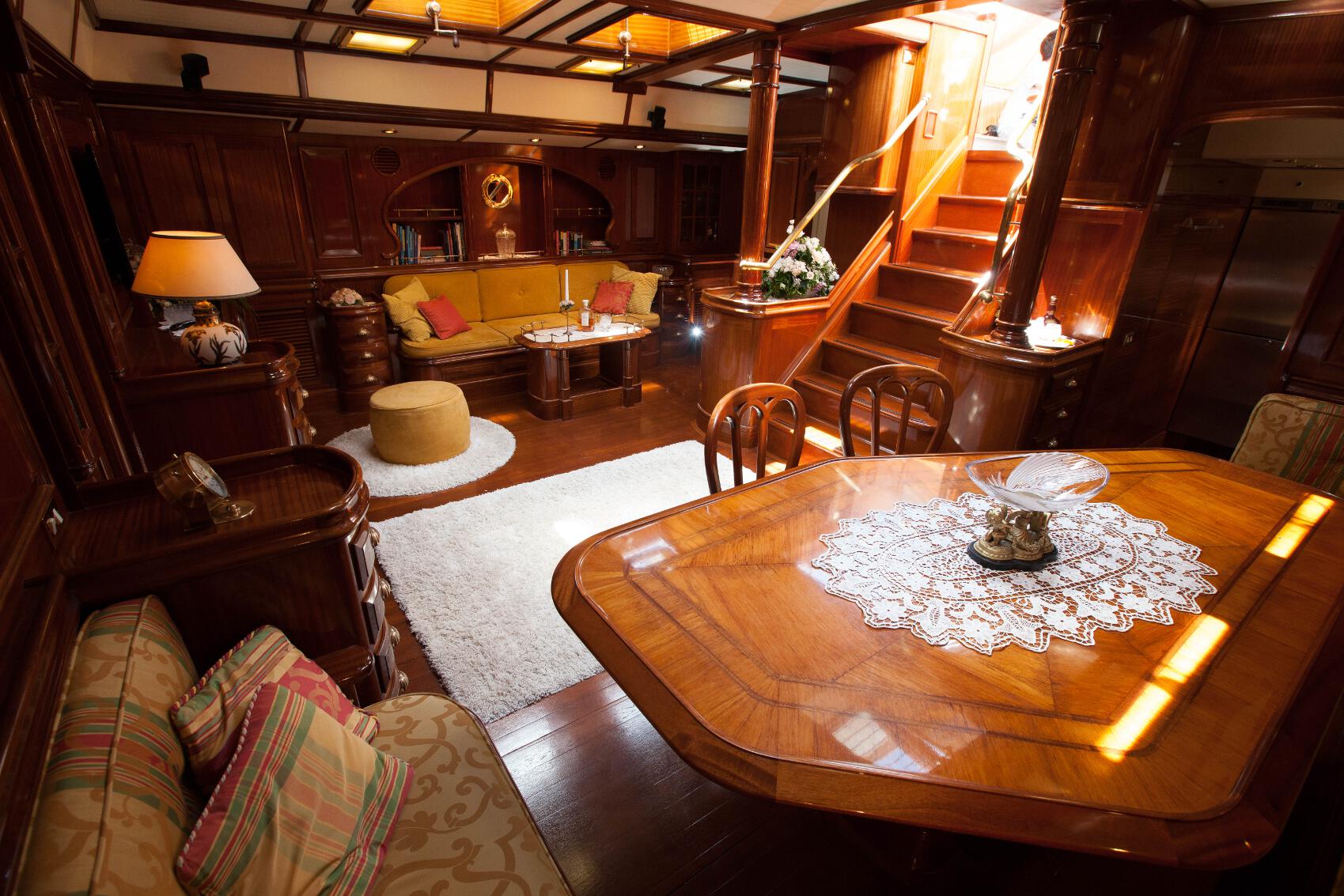 The inteior decor features opulent mahogany and teak, as well as some beautiful elements of crystals and gold.