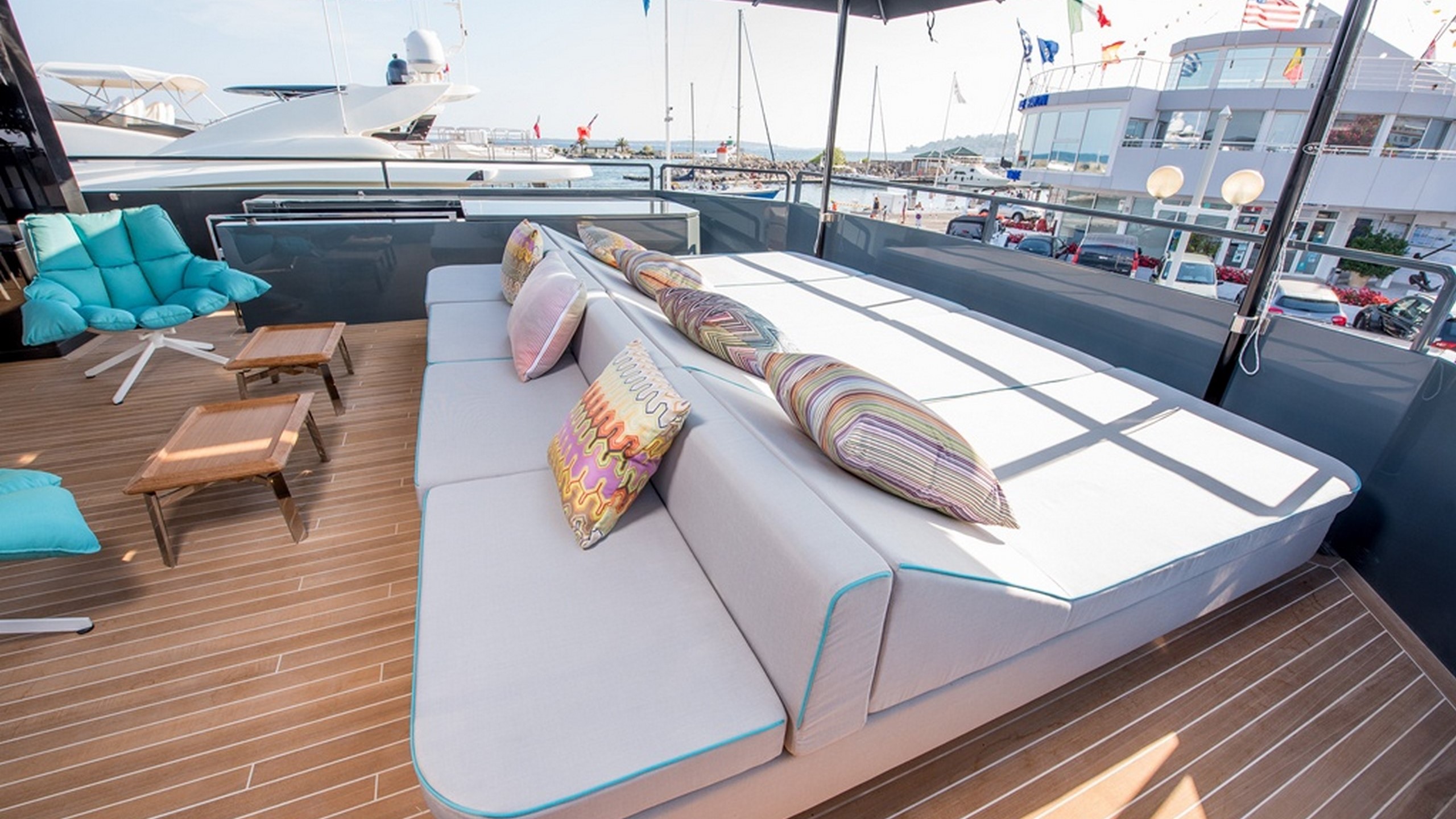 Her elegant exterior was designed by Francesco Guida while her delightful interior features white Poltrona Frau leather furnishing designs. She can accommodate 12 guests in 6 luxurious cabins with quarters for up to 8 crew.