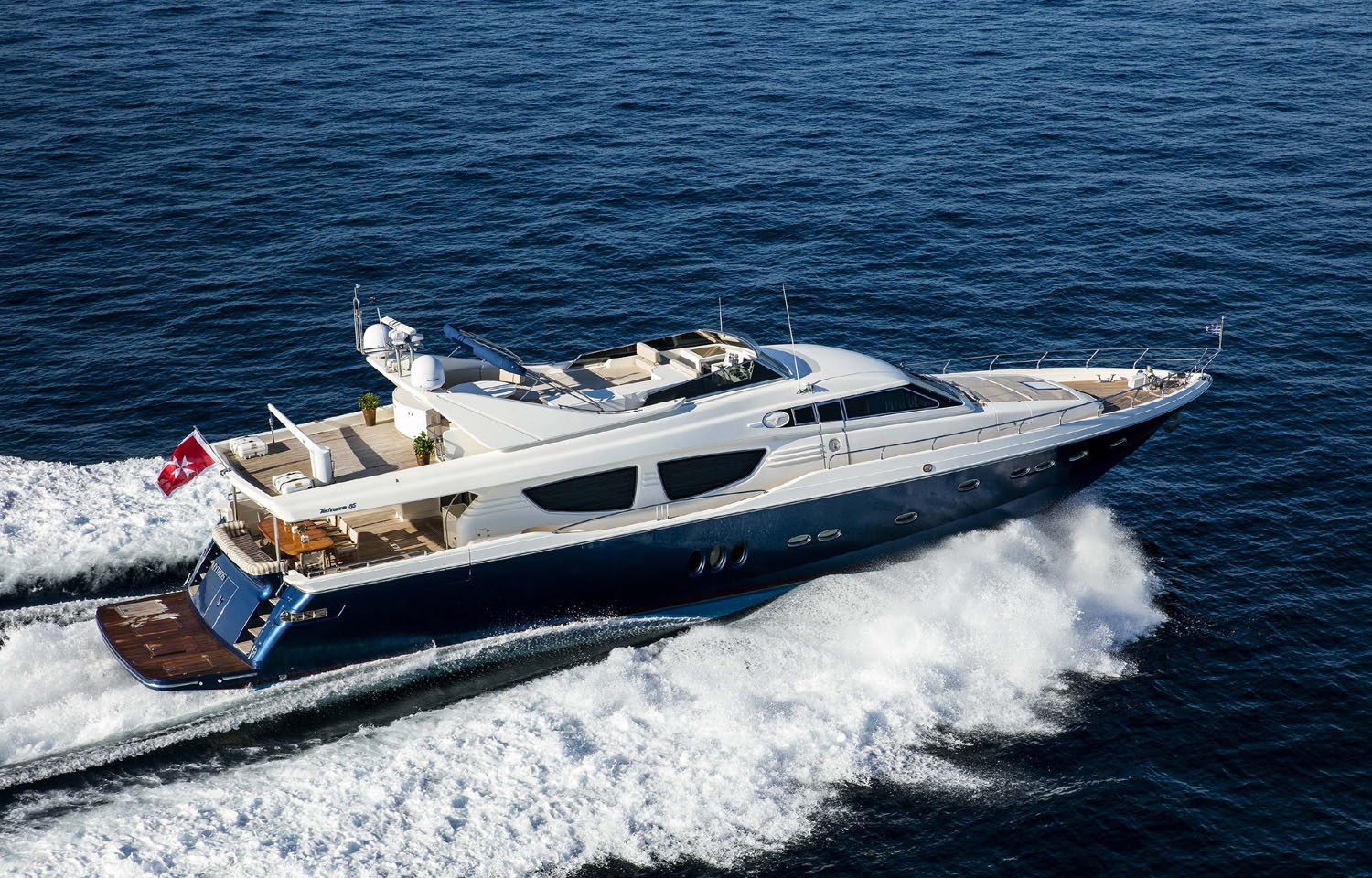 Accommodation is in 4 cabins for up to 10 guests. A master stateroom is full beam of the yacht with a king size bed, vanity and seating area. The VIP cabin is forward and full beam of the yacht, with a center lined double bed. Two guest cabins have side by side twin beds, each with a Pullman berth.