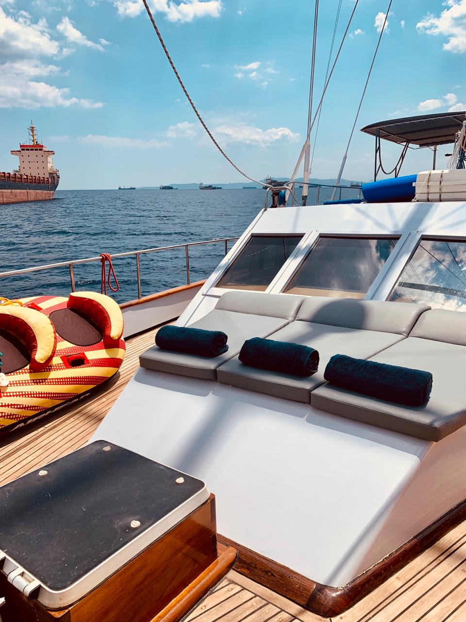 NOTABLE FEATURES OF IRIS PS: ~Refitted in 2019 ~Timeless interiors with modern day comforts ~Plenty of sunbathing space ~Casual indoor and outdoor dining areas ~Air conditioning ~Wi-Fi