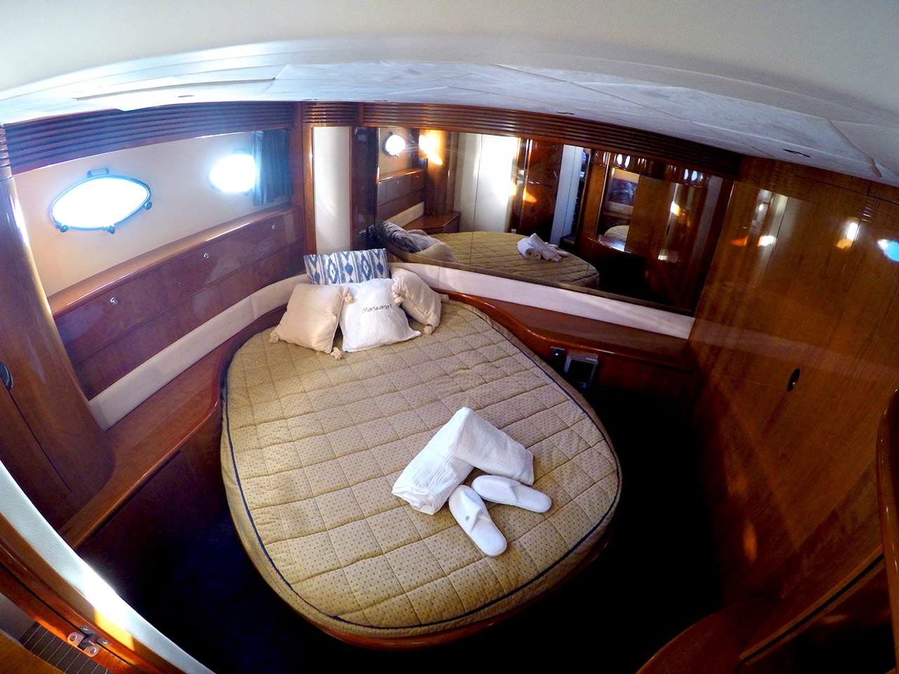 Accommodation is over 3 cabins, including a master stateroom, double cabin and bunk cabin, for up to 6 charter guests.