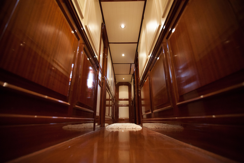 HELIYACHTS 115' provides accommodation in four lovely cabins with classic style, offering comfortable and welcoming overnight stay for up to seven charter guests. The accommodation layout is divided into one single cabin, one double cabin and two twin cabins. The yacht is services by a professional, friendly and trained crew of five.