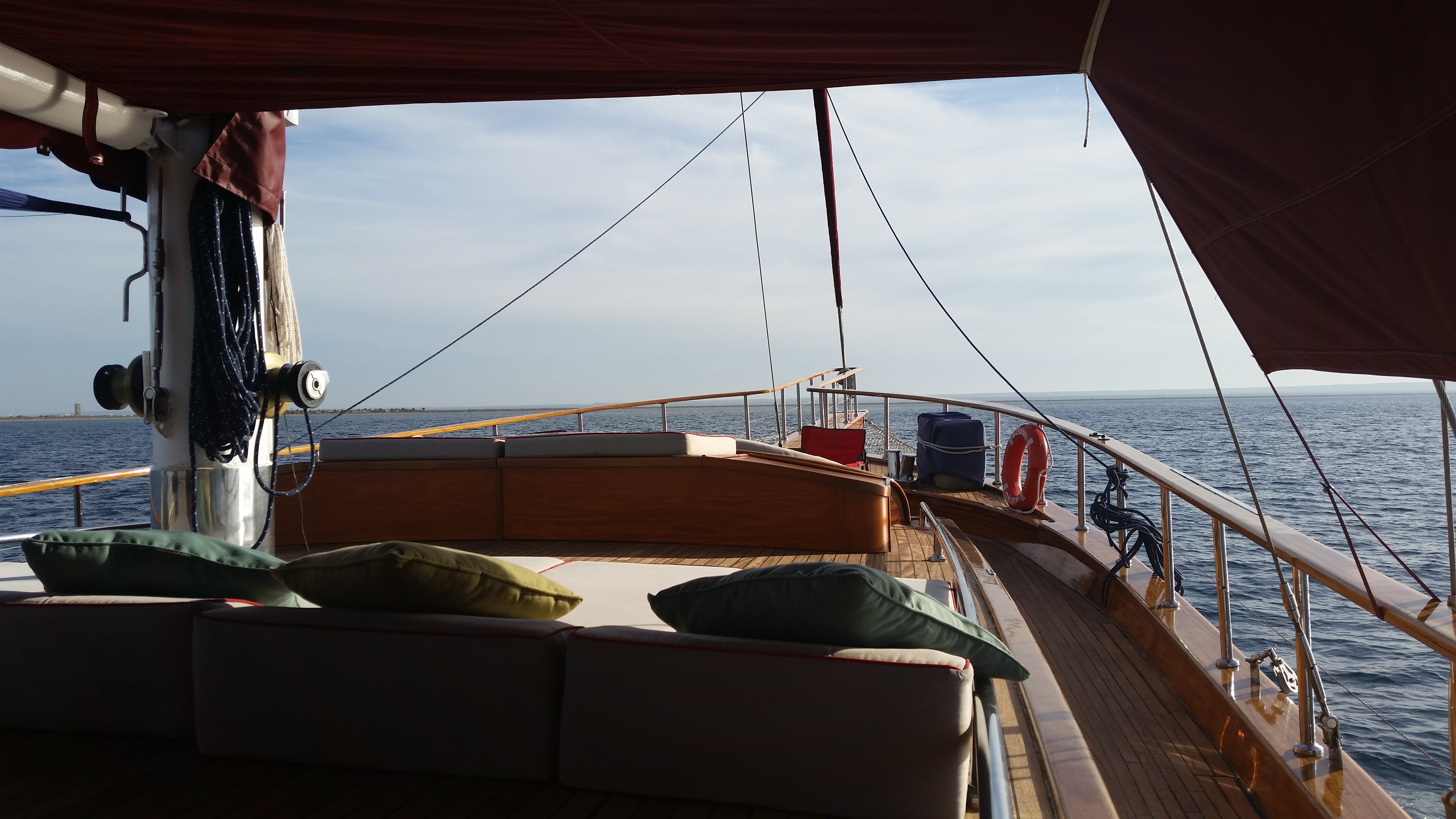 The yachts interior decor has a timeless feel, with lovely wood finishes and neutral fabrics.