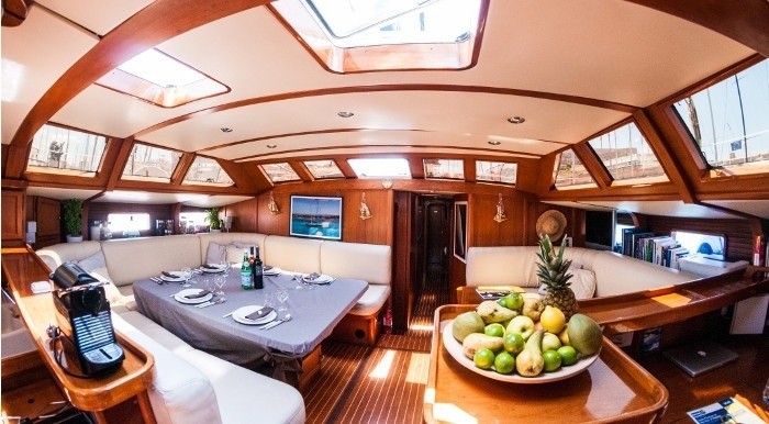 Below deck, the forward and aft section contains the guest accommodation with crew accommodation placed within the bow.