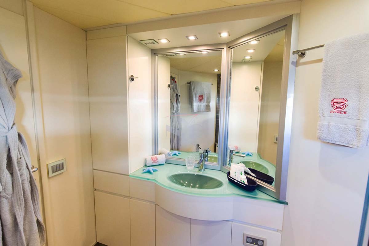 The 2 twin cabins are located on each side of the lower deck, between the salon and the VIP suite, and share the same bathroom. Tenders & Toys