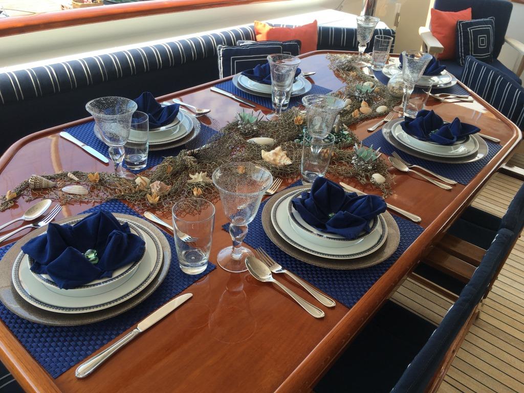 On deck there are ample areas to relax and entertain. Adjacent to the salon is a shaded aft deck and alfresco dining table, easily seating all 8 guests in comfort.