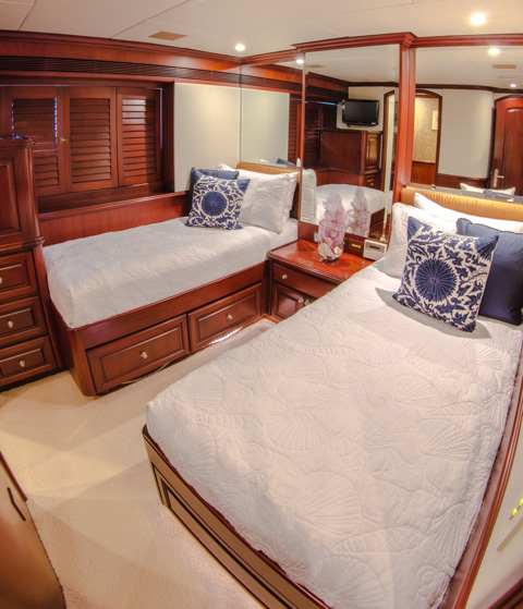 The yacht offers accommodation for up to 8 charter guests, in 4 spacious cabins.