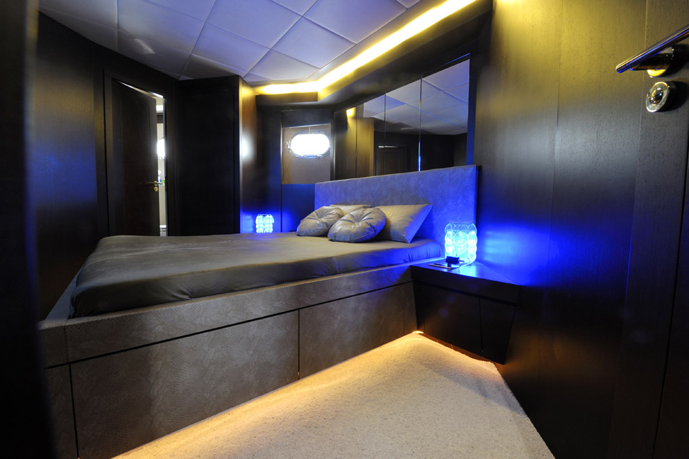 A further twin cabin offers side by side twin beds. All 3 cabins enjoy private en-suite facilities, beautifully finished in bespoke mosaic tiling. Tenders & Toys