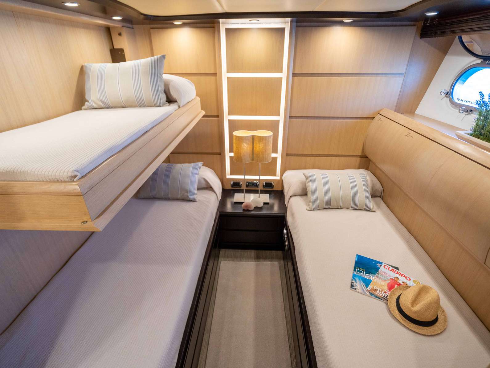 She offers contemporary accommodation for up to 12 charter guests in 5 cabins, with a crew of 5 onboard offering a professional, friendly service.