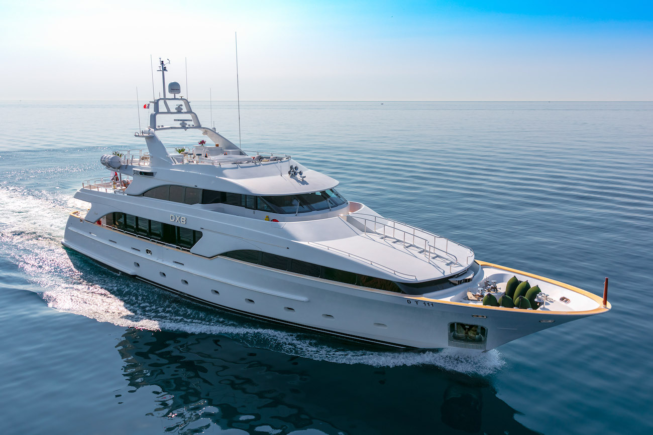 Motor yacht DXB is a 35m (114,10ft) Italian Benetti design. Launched in 2003 and last refitted in 2025, she features a GRP displacement hull. She was designed by Stefano Righini and features a fantastic interior by Francois Zuretti. The yacht can accommodate up to 10 charter guests, in 5 well-appointed cabins.