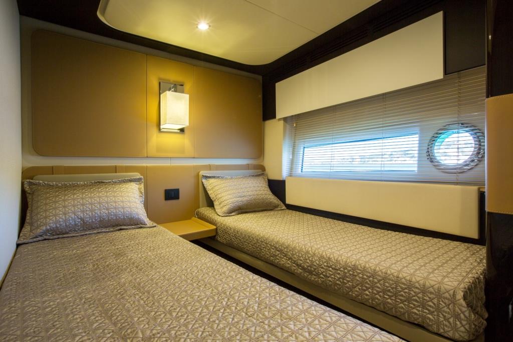 She has a sporty hull design and luxurious interior living, offering accommodation for 8 charter guests in 4 cabins.