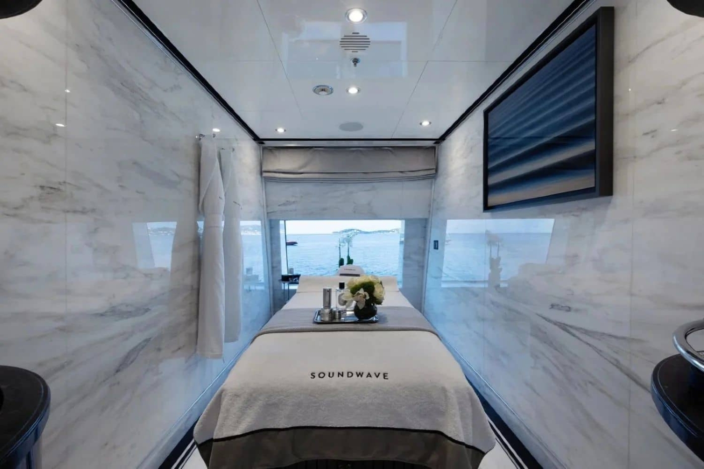 The custom Art Deco-inspired interiors by the Owner’s personal design team offer enhanced luxurious on-the-water living, including a vast private Owner’s deck with the master suite overlooking a private sundeck.