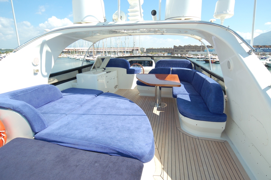 Guests can also enjoy alfresco dining by stepping out onto the aft deck that leads both to the foredeck and up to the spacious flybridge, which makes her the ideal charter yacht for socializing with family and friends.