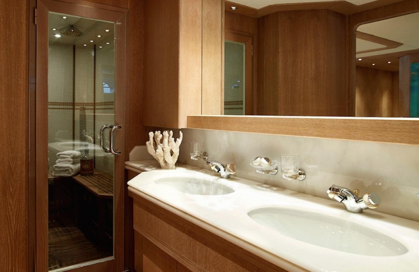 With her 2 x MTU 2.250 HP engines and her aluminium planing hull, this RINA class yacht cruises comfortably at 23 knots with top speeds of 28 knots.