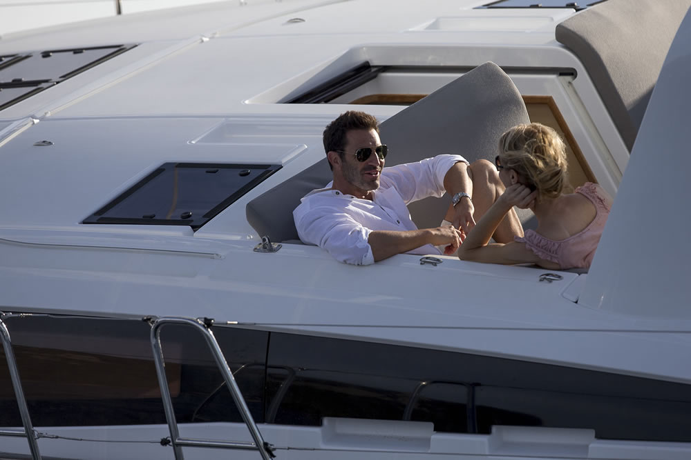 The yachts interior is light and airy, thanks to plenty of in hull windows and overhead hatches.