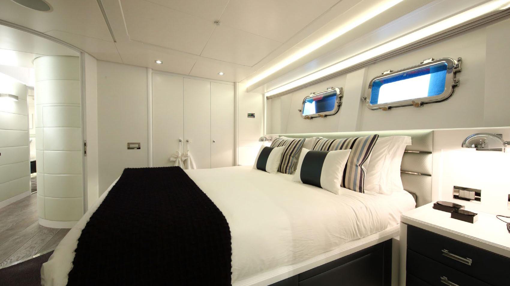 The aft section contains a selection of soft-padded sun loungers to complete the available sunbathing spaces on board.