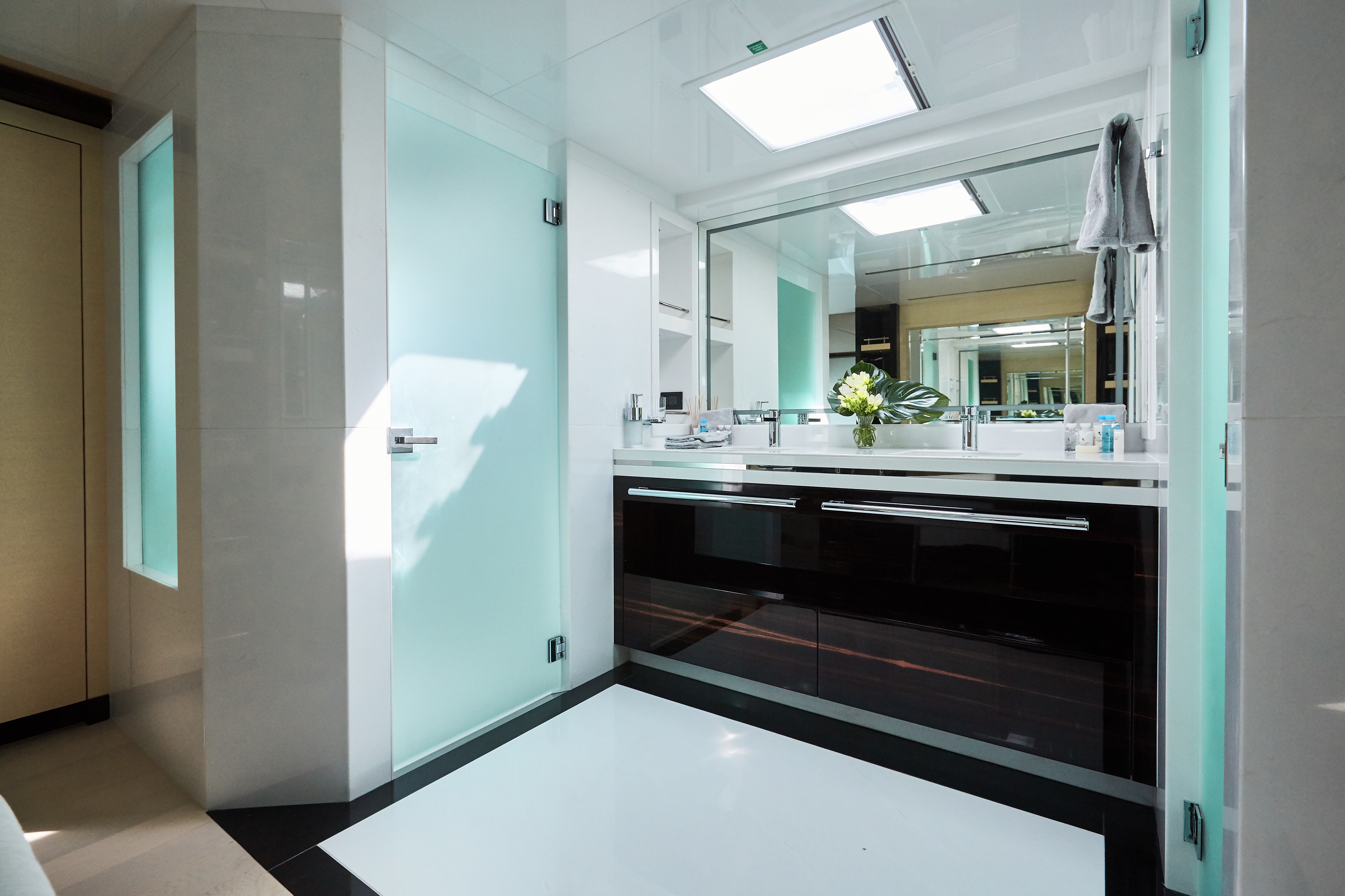 Her main salon table is made of 3 layers of crushed glass. The entire salon is surrounded in large panoramic windows, optimizing natural light and offering spectacular views. To starboard there are sliding glass doors leading ...