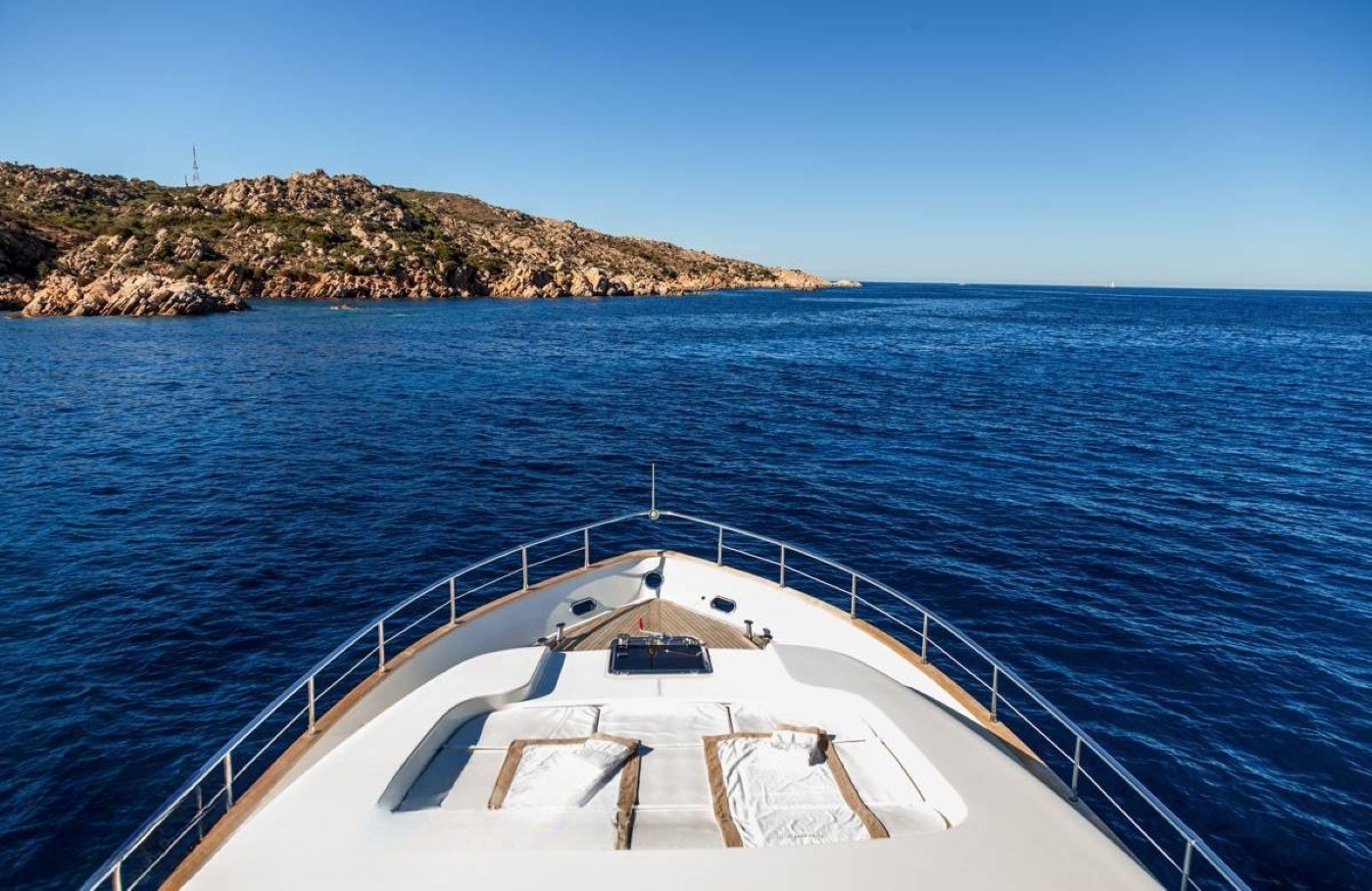 On the foredeck is a triple sun pad, great for complete relaxation and sunning. The upper deck is well-appointed, with an additional alfresco dining option, sun pads and fold-away Bimini cover.