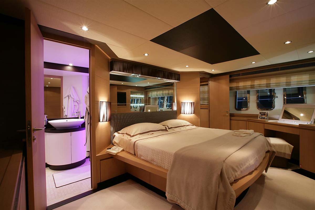 This sleek yacht boasts great exterior living, over 2 levels. The aft deck has partial shade, an alfresco dining table, seating and is directly adjacent to the salon. Further aft an extended swim platform is the perfect water sports center.
