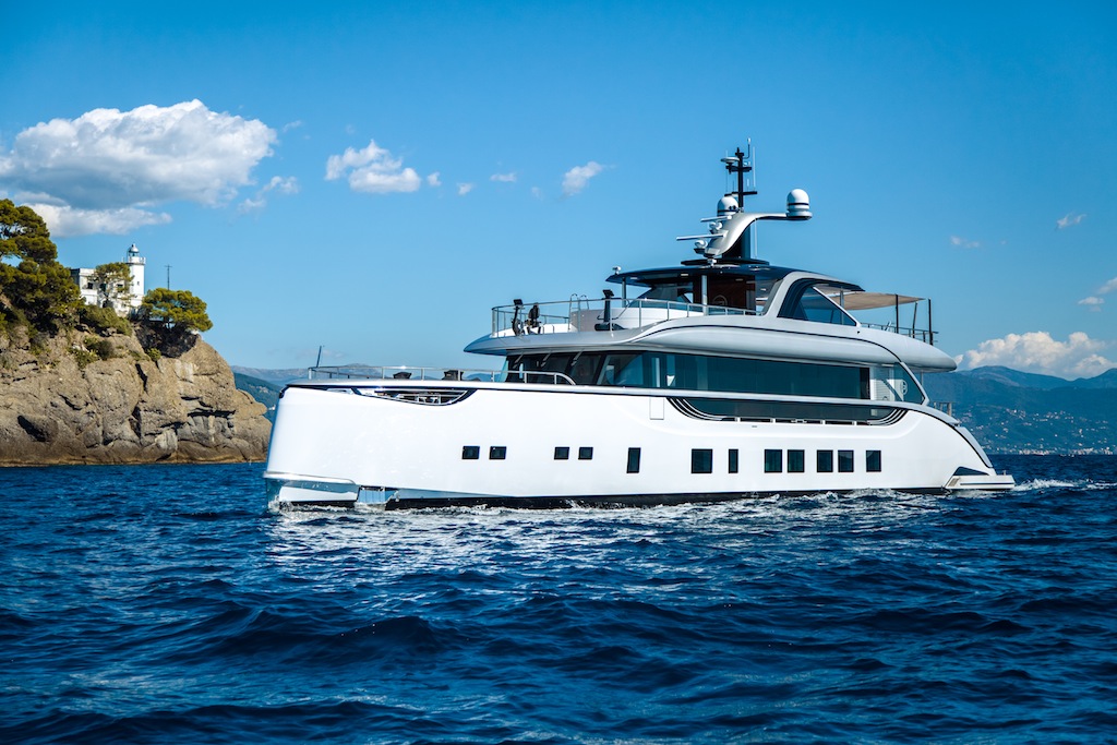 She is fast, yet comfortable and efficient, with naval architecture by Azure Naval Architects and exterior design by Dobroserdov Design. Accommodation on board is offered for up to eight guests, sleeping in four cabins and there is a crew of six offering high-standard, professional service.