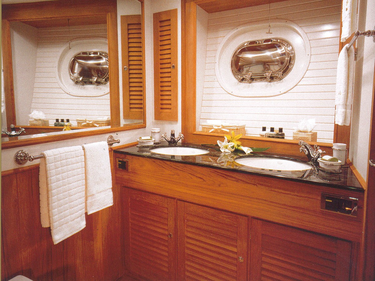 55' Flat Screen TV, DVD Player, CD Player, Portable Wireless Speakers, Direct Satellite TV (limited channels down-island). Large pilothouse which is an excellent location for dining and