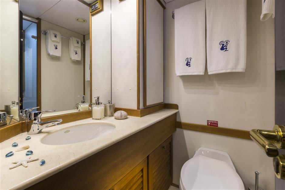 Forward of the main salon is the galley, fully equipped for preparation and serving of delicious meals.