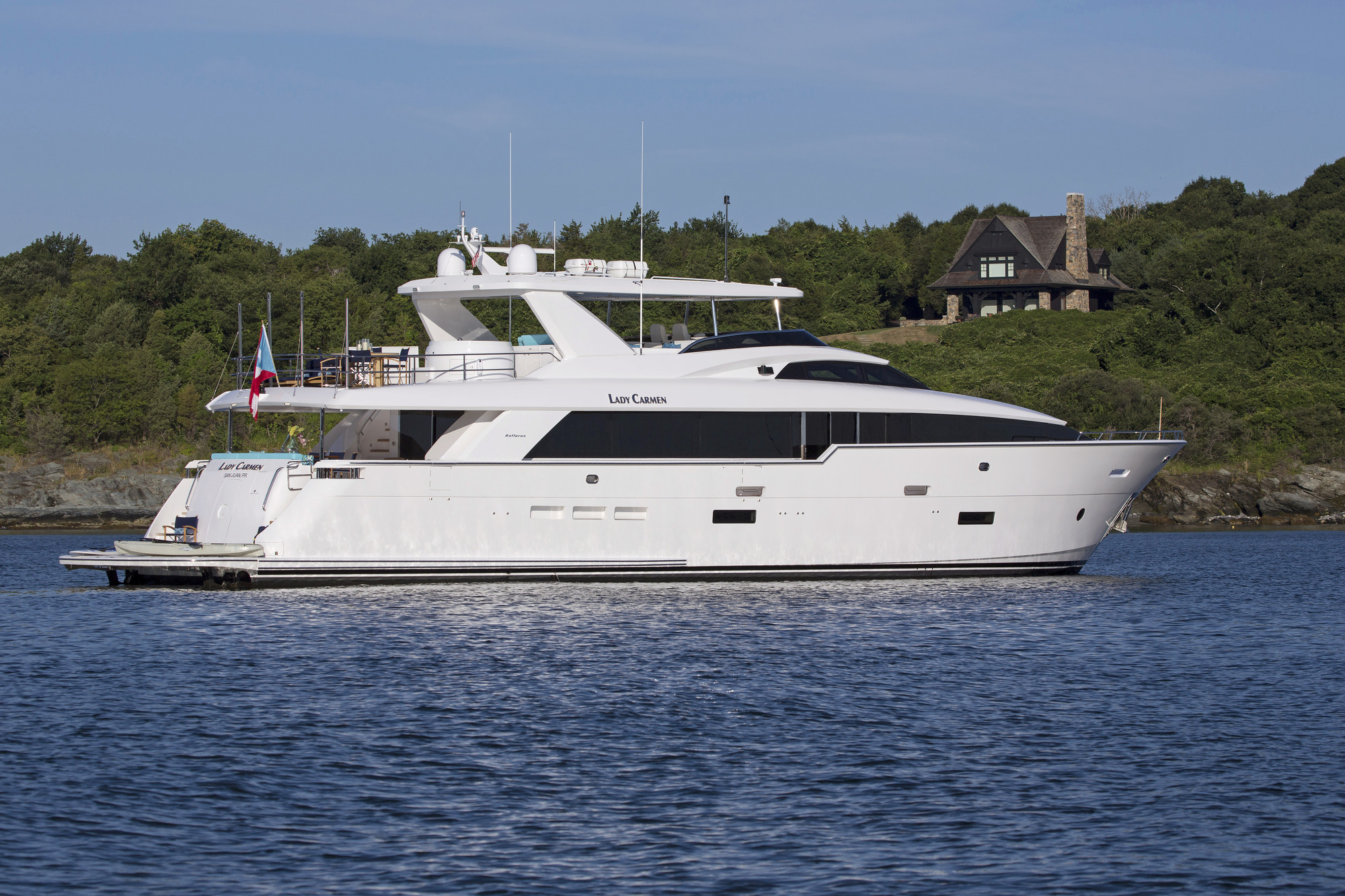 Motor yacht LADY CARMEN was delivered in 2016 by the Hatteras shipyard of the USA. She is 31,09m (102ft) overall and can accommodate up to 10 guests in five cabins, with luxury interiors designed by Hatteras and Cullen Moser.