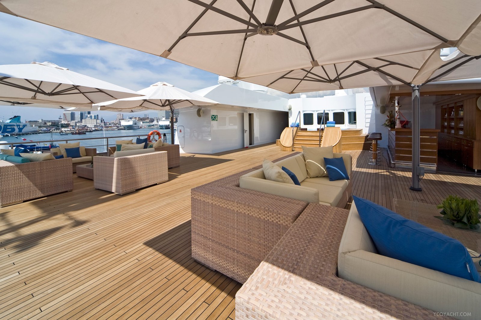 Cassens-Werft also completed her exterior styling and while her interior is the work of Alpha Marine. At dockside events she can accommodate up to 300 guests across four decks, and her accommodation provides for up to 36 guests ...