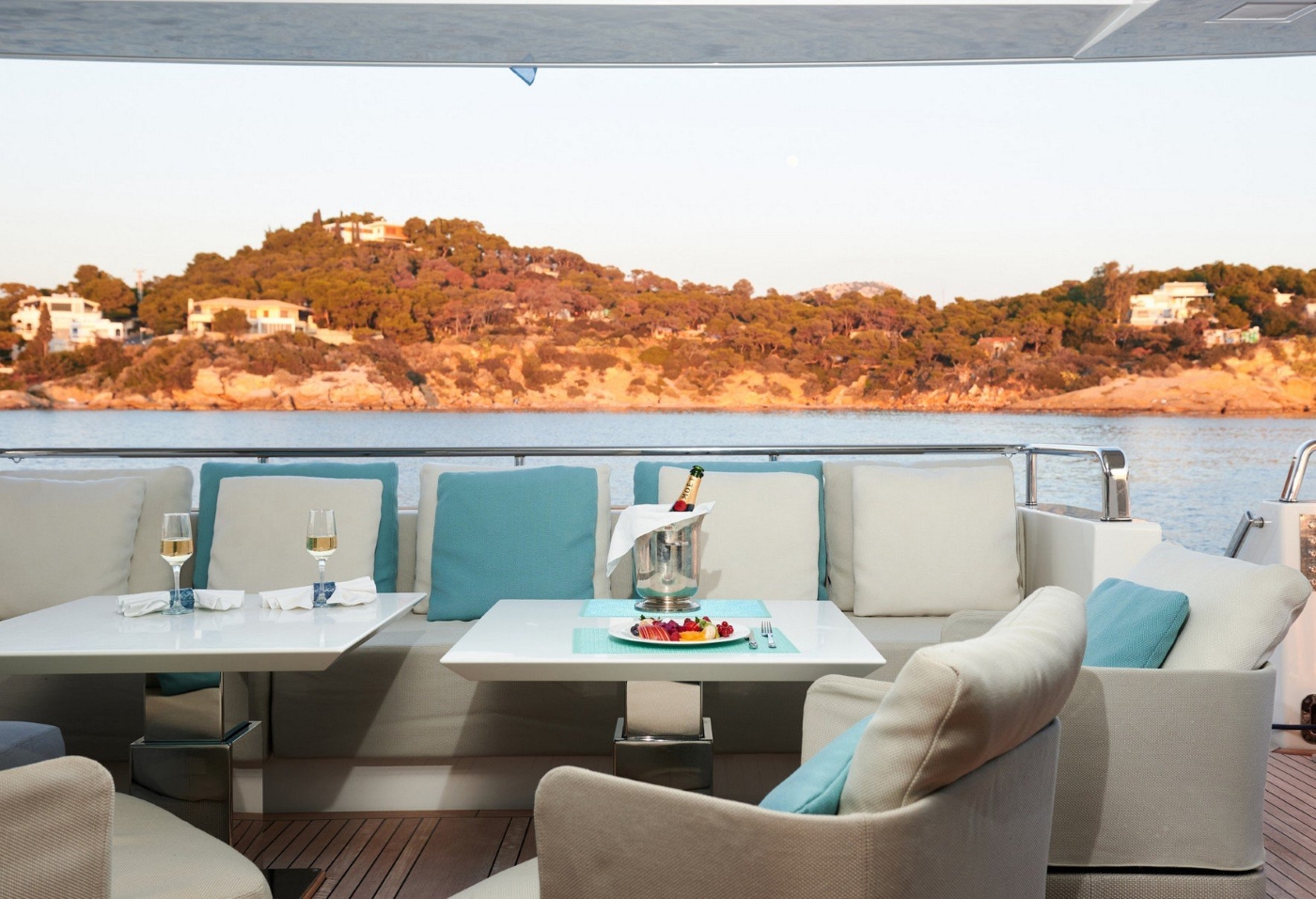Exterior living is ample over 2 levels. From the salon, doors lead directly to the partially shaded aft deck and relaxation area. For water enthusiasts, the extended swim platform is the ideal water activity centre.
