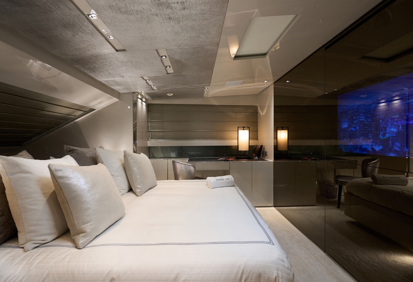 Accommodation is in 5 en-suite cabins, for 11 guests. The master stateroom is located on the main deck, forward of the salon and dining. The master cabin offers a queen-size bed, vanity, generous en-suite with a tub and plenty of storage.